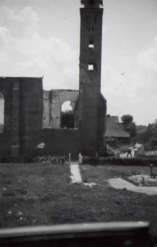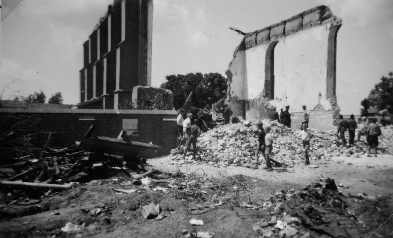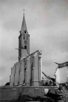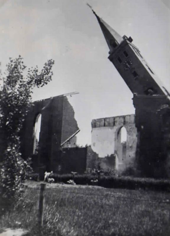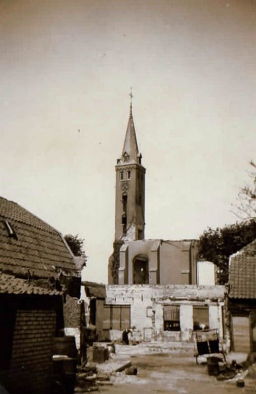 Als gevolg van oorlogsschade was de kerk zodanig beschadigd dat de nog overeind staande toren een groot gevaar voor instorting vormde. Daarom is besloten de toren neer te halen. Dit gebeurde op 26 juni 1940.