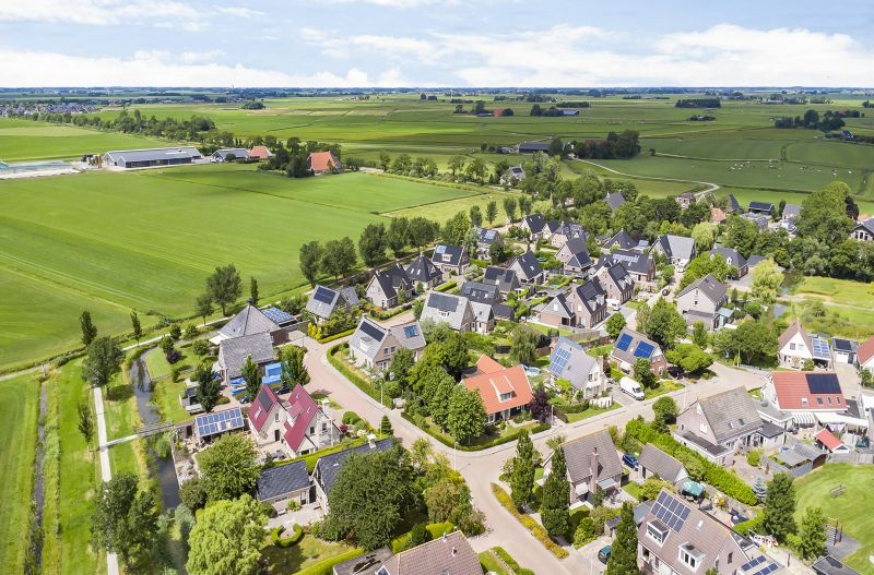Ze staan er wat midden op de ruimte. Dat is op een enkele foto te zien. Wat bijzonder is aan aan dit nieuwbouwplan is dat er veel variatie is in de huizen. Met geschakelde huizen en met een flink aantal vrijstaande woningen. Dat maakt het tot een bijzonder plan, met straatnamen die verwijzen naar de eerdere bestemming van boomgaard.