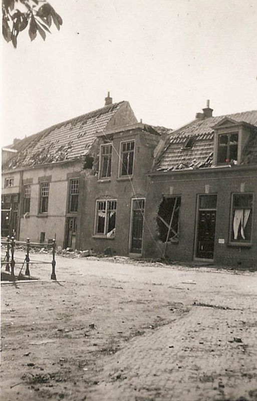 13 mei 1940 - De huizen van bakker de Vries, de weduwe De Wilde en pontbaas Bol