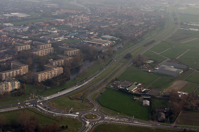 Luchtfoto met zicht op het Botenpad en 't Boonrak.