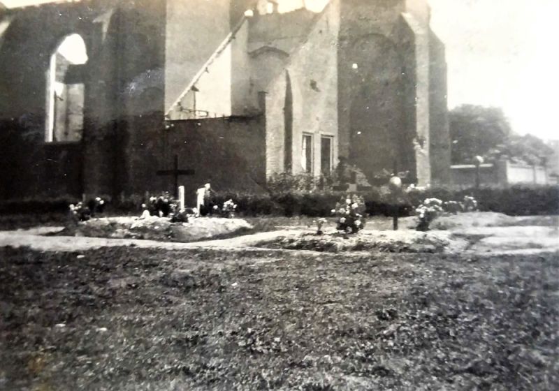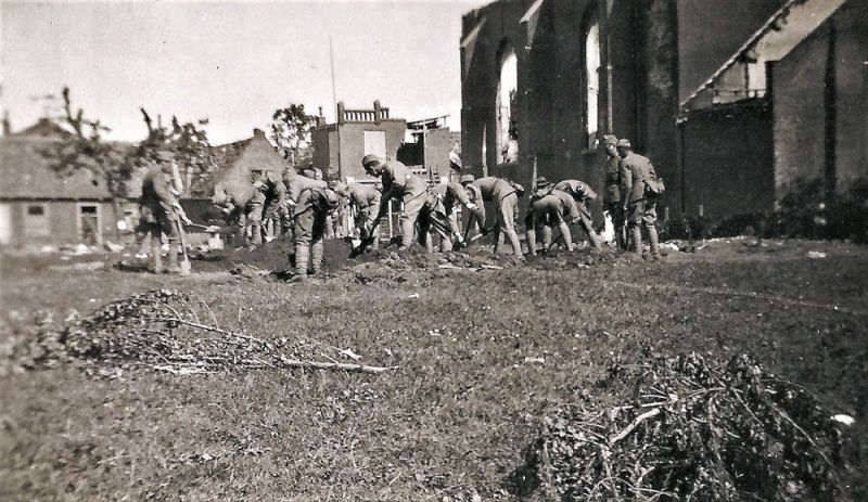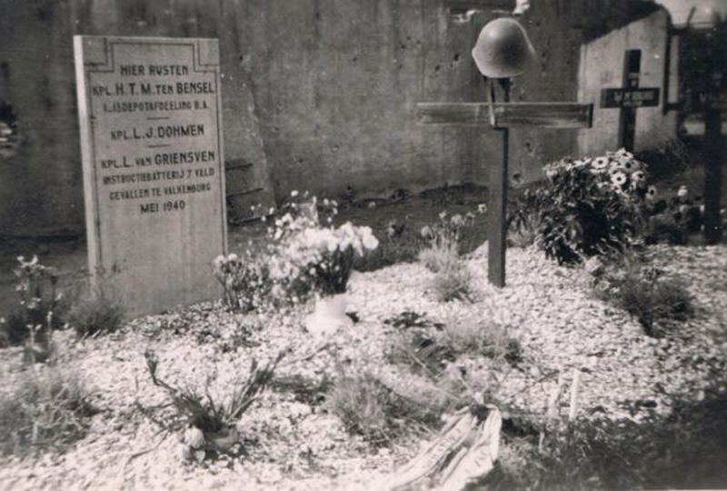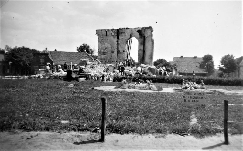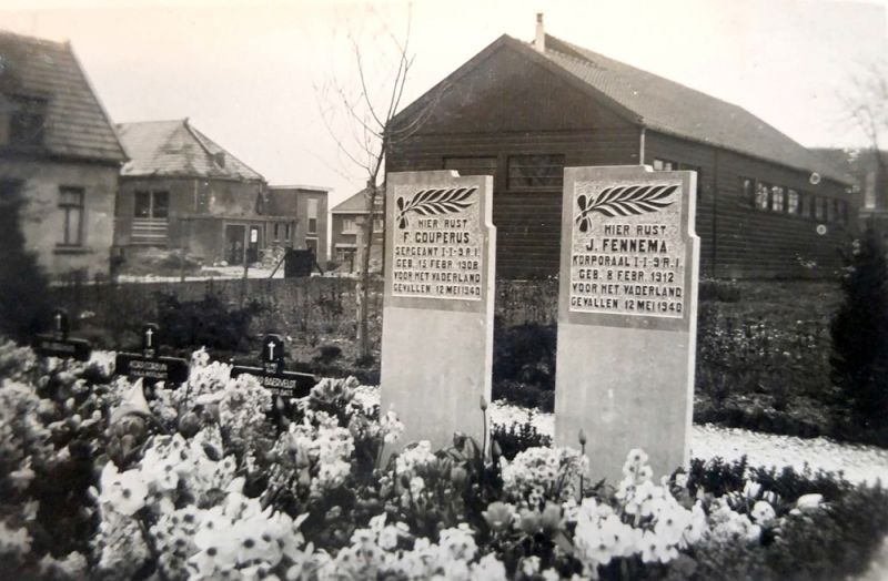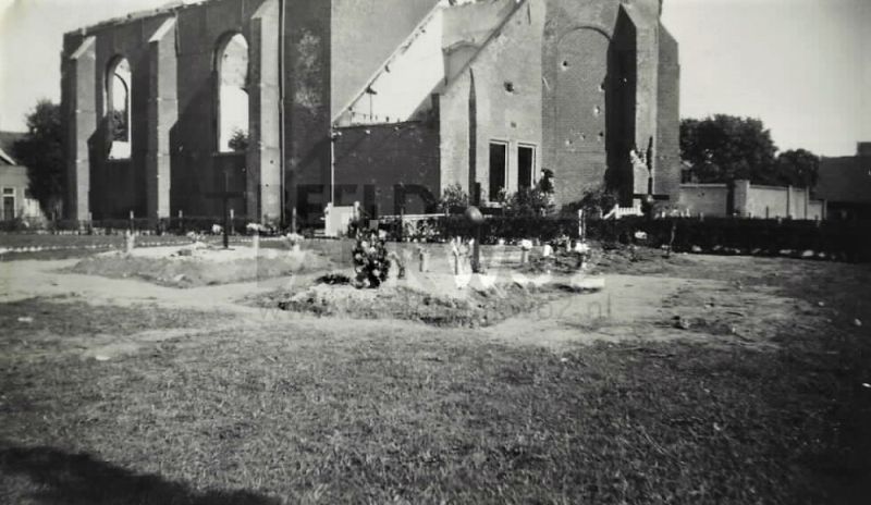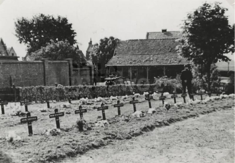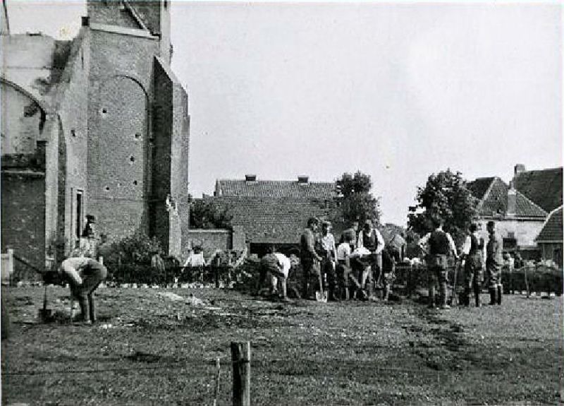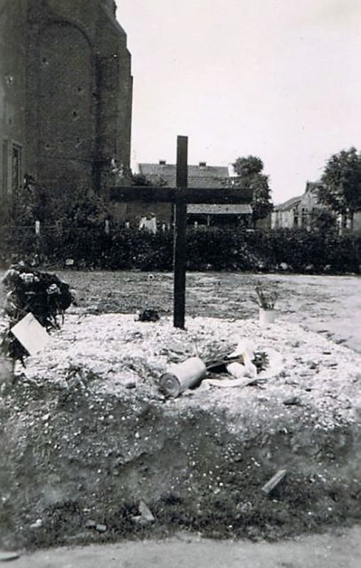 Na de oorlogshandelingen zijn de nederlandse en duitse gevallenen tijdelijk begraven rondom de plaats waar de kerk had gestaan aan het Kerkplein.