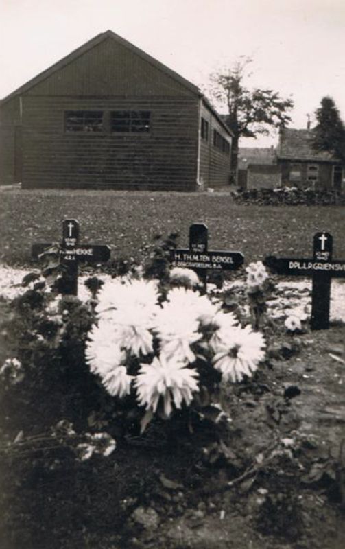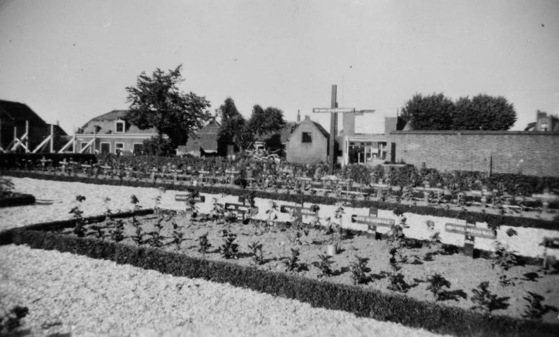 Na de oorlogshandelingen zijn de nederlandse en duitse gevallenen tijdelijk begraven rondom de plaats waar de kerk had gestaan aan het Kerkplein.