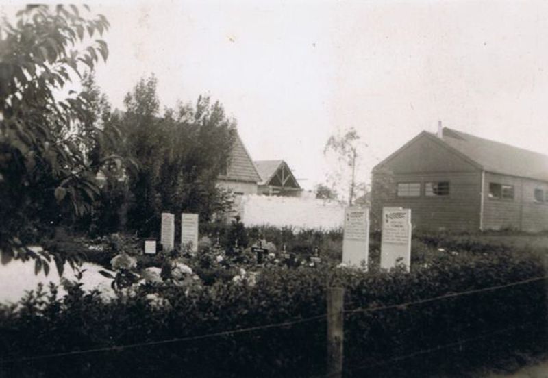 op de voorgrond de begraafplaats van de Nederiandse militairen..
