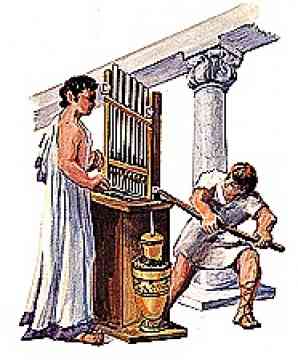 Ongeveer 246 voor Christus wordt er voor het eerst melding gemaakt van een instrument, dat iets weg heeft van een orgel. De Griek Ktesibios van Alexandrië vervaardigd een muzikaal speelgoed dat mechanisch door pompen werd bediend. Deze zogenaamde hydraulis van de Griekse woorden hydoor (water) en aulos (pijp), bezat wel de vaste delen van wat wij nu een orgel noemen, maar de druk werd geregeld door water, zoals de naam aangeeft. De hydraulis werd tot in de 4e eeuw na Christus nog gebruikt als populair luxe-instrument.