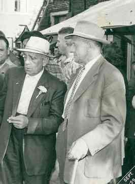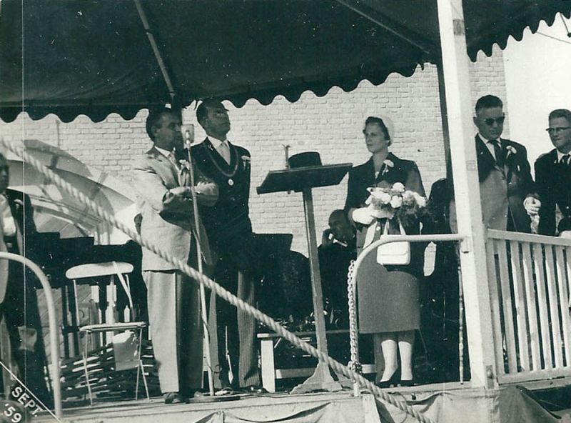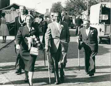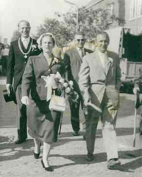 Voorop Cees Meurs, verder burg. van der Have met echtgenote en Martien van Stijn