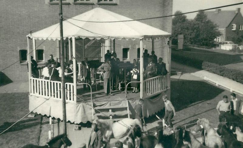 (1) Het podium is pas opgesteld voor de Nederlands Hervormde Kerk, de paarden st