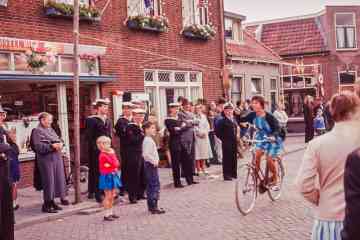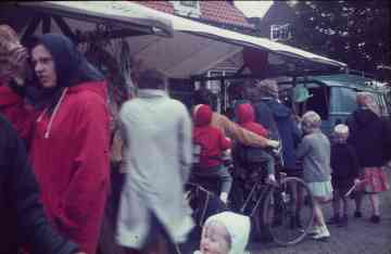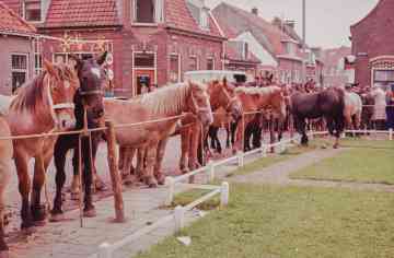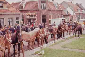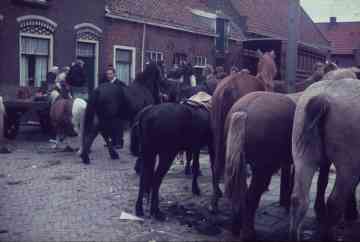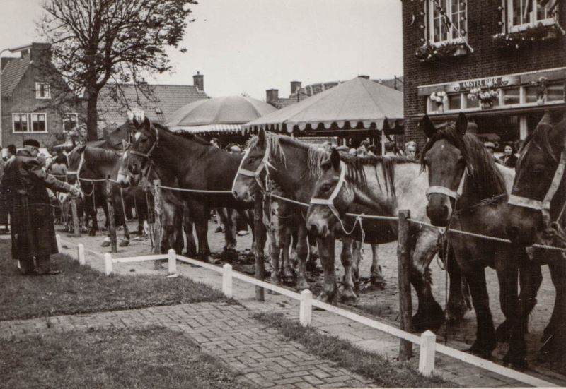 Paardenmarkt voor de kerk. op de achtergrond de winkel van Meurs.
