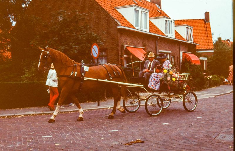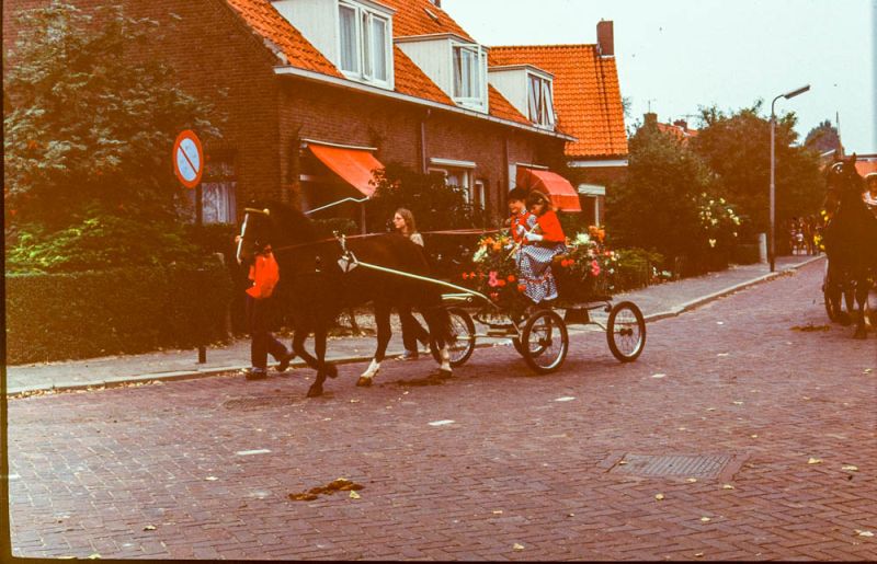 Ringrijden in de Marinus Poststraat tijdens de paardenmarkt.