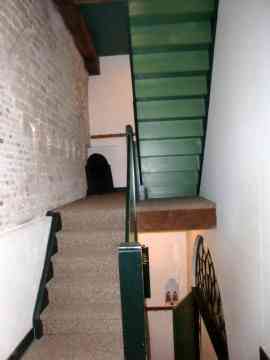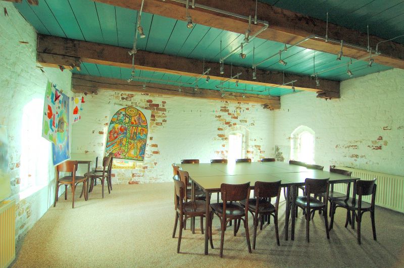 Mei de lange trep omheech passearje wy de doar rjochting de kreake. In pear stappen fierder komme jo yn in keamer mei in folslein oare sfear as dy hjirûnder. Sûnt de restauraasje wurdt dizze romte brûkt foar de bernetsjinst op snein, en troch de wike foar allerhande gearkomsten. Spitigernôch kinne wy ​​net mear útfine oft dizze flier der altyd west hat. Mar der moat ek earne plak west hawwe foar de koarknapen om sich te ferklaaien.