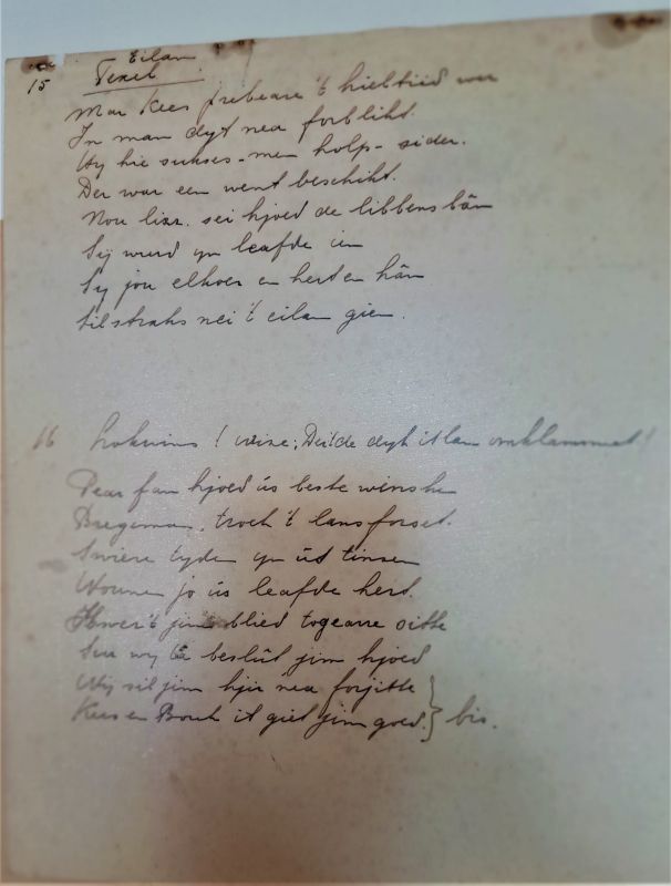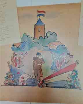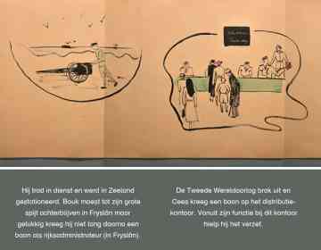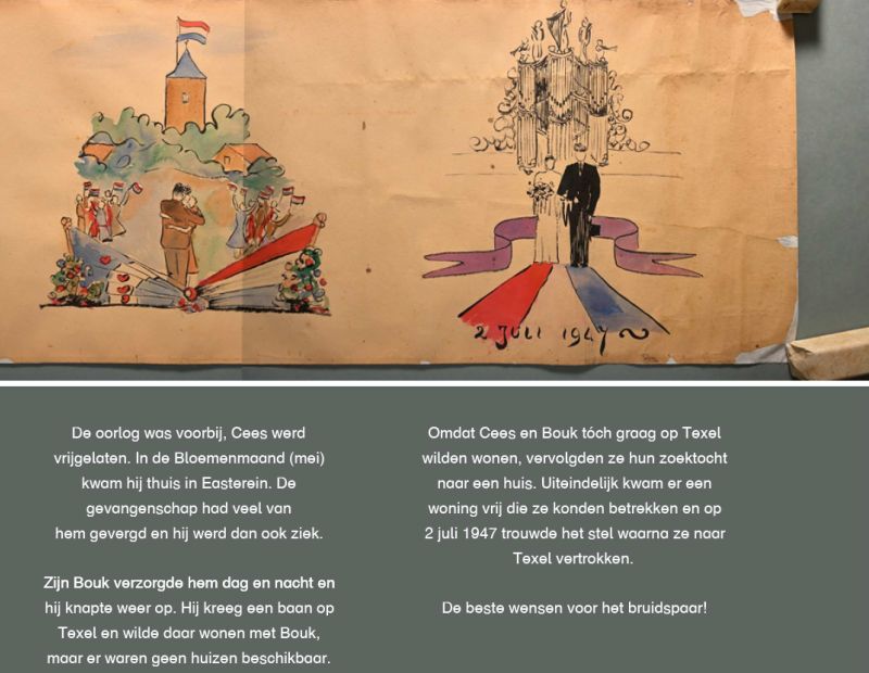 Op 2 juli 1947 stapten de 27-jarige Cornelis (Cees) Joustra en 27-jarige Bouk de Boer in het huwelijksbootje. Dit vierden zij met familie en vrienden in café Bergsma in Easterein. Speciaal voor de bijzondere gebeurtenis maakten vrienden van Cees een zogenaamde ‘schnitzelbank’. Het document is 76 jaar later nog in goede staat en is dit jaar geschonken aan Tresoar. Als één van de weinige archieven van Nederland is Tresoar nu in het bezit van een schnitzelbank!