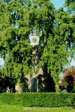 It tsjerkje is yn 1854 boud om in âlder eksimplaar te ferfangen dat foarsjoen wie fan ferwulfskilderingen. De tsjerke hat in trijekantich sletten koar en in lytse geveltoer dy’t bekroand wurdt troch in elegant, iepen wurke koepeltsje. Yn de tsjerke lizze twa belangrike Oenema/Roorda sarken yn renêssânse styl, in dekorative troch Pieter Dirxsz (1570) en in portretsark (1610) troch Jacob Lous.