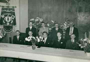 Bestuur en jubileumcomité voor de 50-jarige Harmonie Staand: S.M. Poot, C. Meur