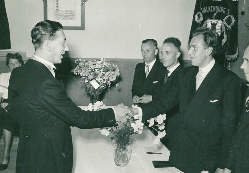 Bestuur (zittend): D. van Duyn, M. Korpershoek, dir. Bockhove, P. van Duyn, A. v