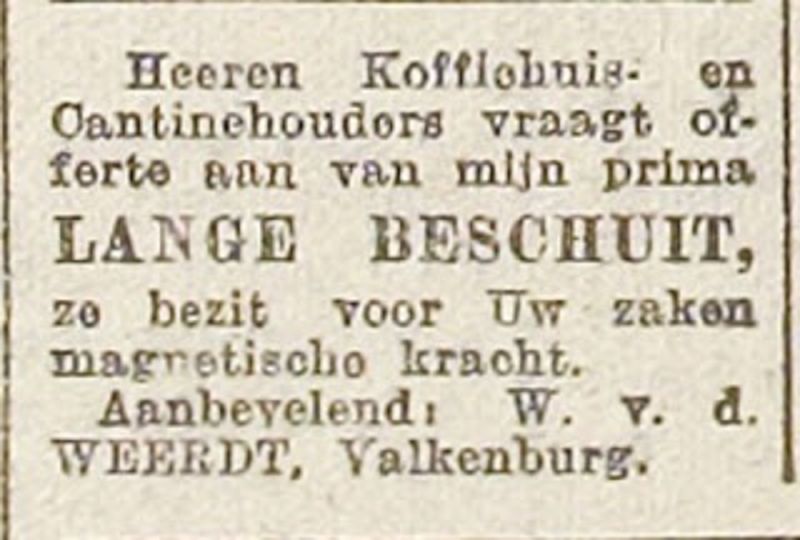 Gevestigd aan de Hoofdstraat, begin 20e eeuw. Naast kapper Ouwersloot, tegenover waar nu het Wapen van Valkenburg is.