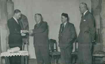 12 1/2 jarige jubileum van de Brandweer. Burgemeester van der harst overhandigd
