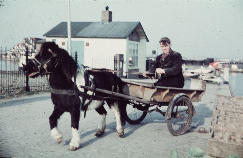 De foto met paard en wagen: Wim Ooms. Hij werkte aan de overkant van de Rijn, i