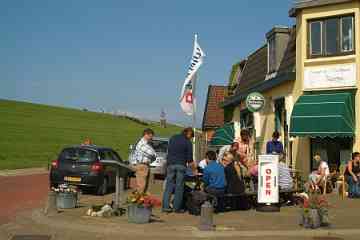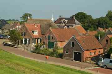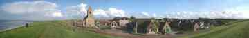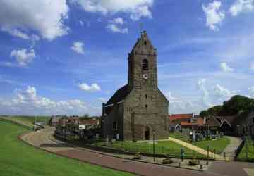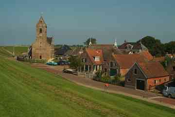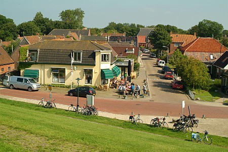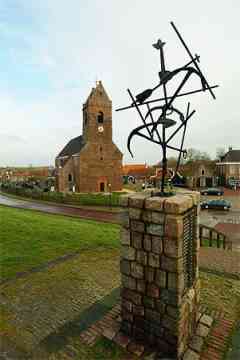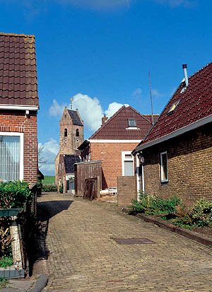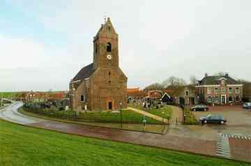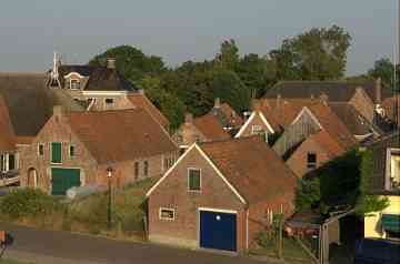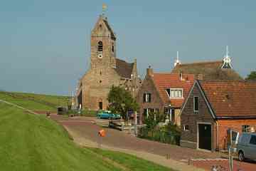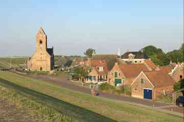 Wierum (370 Einwohner) ist ein Terpdorf, das an einem Quelderdamm am Meer im frühen Mittelalter entstanden ist. Die Meeresnähe blieb im Laufe der Jahrhunderte nicht ohne Folgen; ein Teil des alten Wohnhügels ist weggeschwemmt; dort ist auch ein teil des alten Dorfes Opfer der Fluten geworden. Die Kirche am Deich gelegen, dagegen nicht. Die Marienkirche stammt aus dem 12. Jh. Das Kirchenschiff wurde 1912 durch ein neues Gebäude ersetzt ¬ - wodurch ein Stück Dorfgeschichte endgültig verloren ging. Erhalten geblieben ist der Tuffstein-Kirchturm aus dem 12. Jh. mit dem Wierumer Aek als Wetterhahn, eine Erinnerung an die Fischerei-Vergangenheit von Wierum. Heute beginnen in Wierum die Wattwanderungen in Richtung Engelmansplaat.